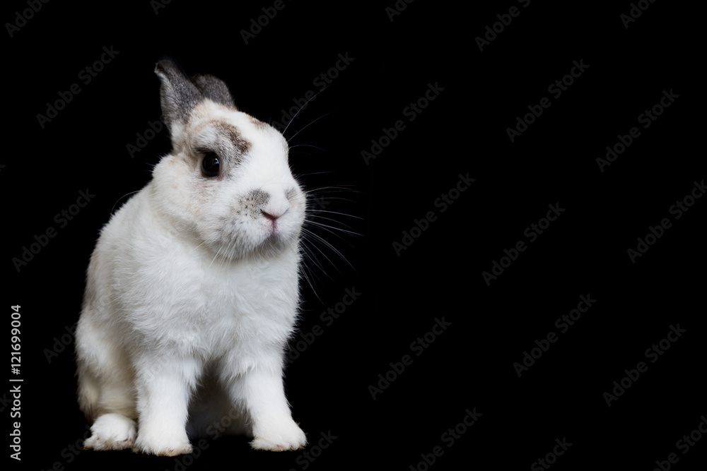 Cute White Netherland Dwarf Rabbit With Black Background Copy Space For Text Stock Photo Adobe Stock